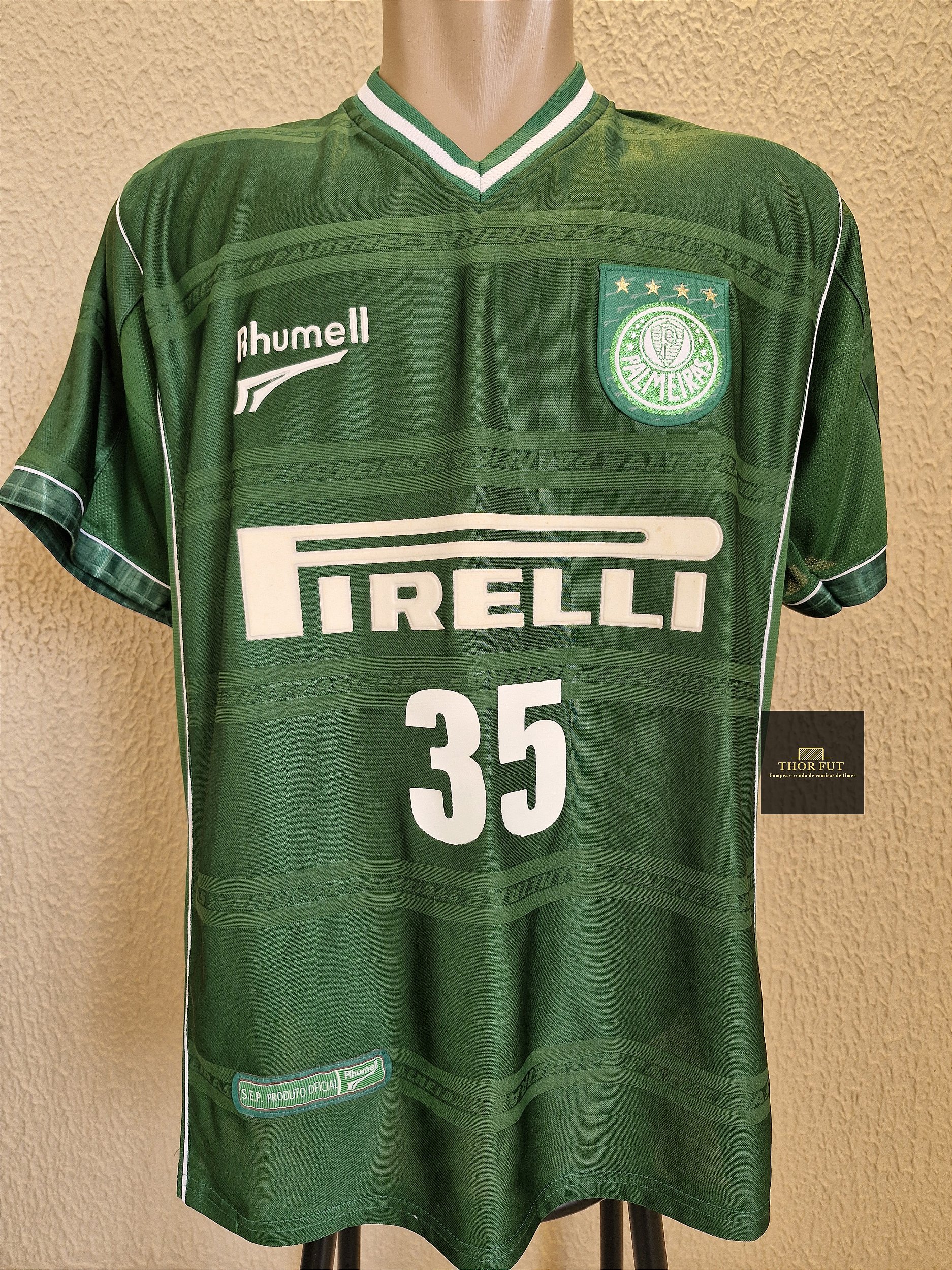 Camisa original de jogo do Palmeiras da temporada de 2001/2002. Item em estado impecável de conservação, com detalhes pintados e sem avarias no tecido. Camisa usada no torneio Rio/SP.